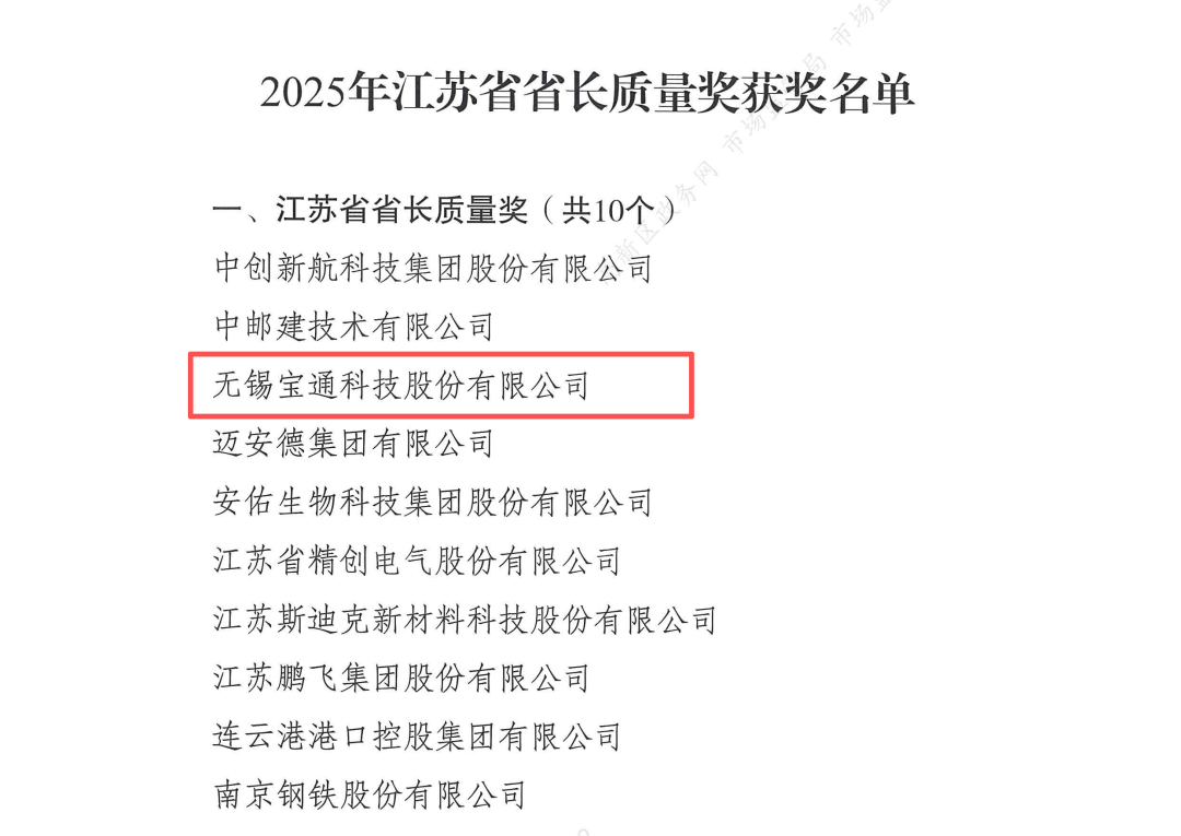 无锡唯一!宝通问鼎2025江苏省省长质量奖